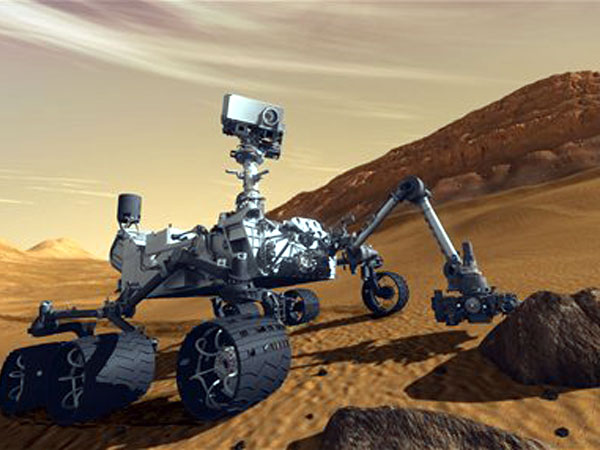 The size of a Mini Cooper and nicknamed Curiosity, the rover is a souped-up version of the golf cart-size twin rovers Spirit and Opportunity. Essentially a science laboratory on wheels, Curiosity carries a suite of tools to analyze Martian rocks and soil to determine whether environmental conditions can support primitive life.