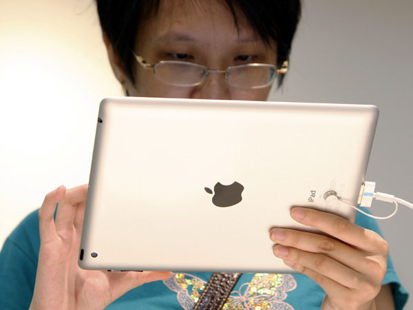 A visitor tries out a new iPad tablet computer at an Apple store in Klang, outside Kuala Lumpur, Malaysia. AP