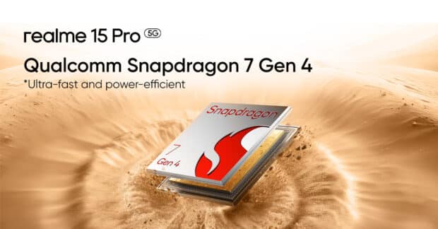 - The realme 15 Pro 5G is powered by the Qualcomm Snapdragon 7 Gen 4, offering lightning-fast processing and smooth app switching. This enables gamers to enjoy fluid graphics and stable frame rates, while multitaskers can rely on lag-free performance across multiple apps.
