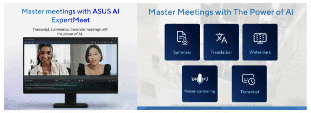 The ASUS ExpertSeries is equipped with practical AI technologies, with a key highlight being ASUS AI ExpertMeet—a smart collaboration toolkit that can record meeting content, generate concise summaries, display real-time subtitles, provide bilingual translation, and even insert watermarks when users share their screens. All processing is done locally on the device, ensuring fast response times and absolute data security.