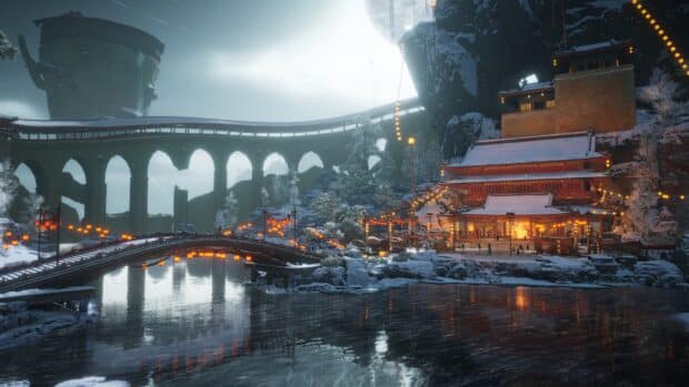 Liangzhou opens up a new explorable region that sharply contrasts with Chapter 1’s arid terrain. Inspired by classical Eastern poetic imagery, the map blends romantic visuals like glowing wine cups under moonlight with the rigid, militaristic atmosphere of a frontier stronghold.