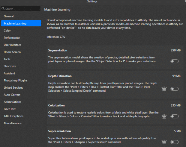 If you don’t have a Canva paid account, Affinity still offers AI tools that run directly on your device. These include image segmentation (automatically selecting parts of an image), colorization (adding color to black-and-white photos), and super-resolution (upscaling images without losing quality).