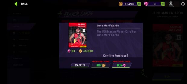 Players have to be money smart, as all-stars like June Mar Fajardo cost 45,000 gold coins. | In-game screenshot by Daryll Galindo