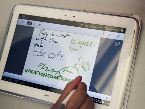 In this Aug. 14, 2012 photo, Samsung’s new Galaxy Note 10.1 tablet is demonstrated in New York. AP/Mark Lennihan