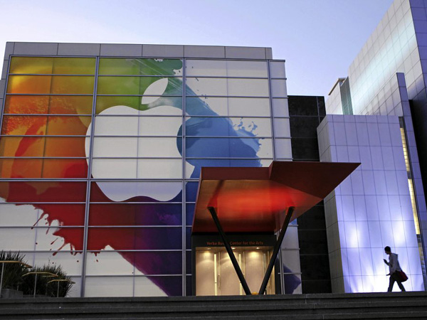 An Apple logo is seen at the entrance of Yerba Buena Center for Arts in this March 6, 2012 file photo in San Francisco. AFP FILE PHOTO