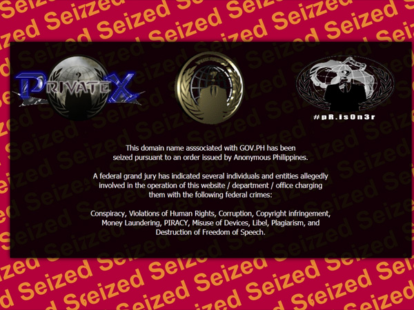 “This domain name associated with GOV.PH has been seized pursuant to an order issued by Anonymous Philippines,
