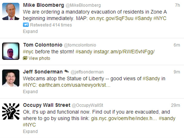 On Twitter, #Sandy was one of the top trending topics in cities and areas on the predicted pathway of the storm as nervous residents looked for the latest news and posted links to useful websites on how to stay safe.