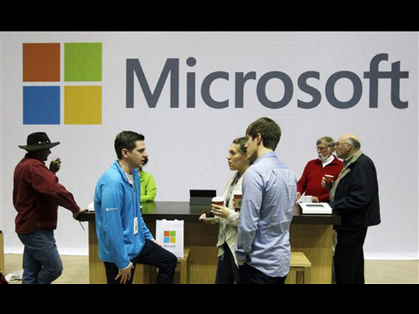 In this Nov. 28, 2012, file photo, Microsoft Corp. retail store employees and guests mingle at a pop-up Microsoft Store during Microsoft’s annual meeting of shareholders, in Bellevue, Wash.ington. Longtime users of Hotmail, MSN and other Microsoft email services will start noticing a big change: When they sign in to check messages, they’ll be sent to a new service called Outlook.com. AP PHOTO/TED S. WARREN