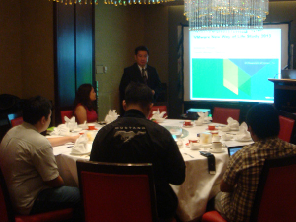 VMware Philippines country manager Emmanuel Portugal announces the results of their “New Way of Life 2013” study which found that employees were happier when they are allowed to use their own computer devices in their jobs.