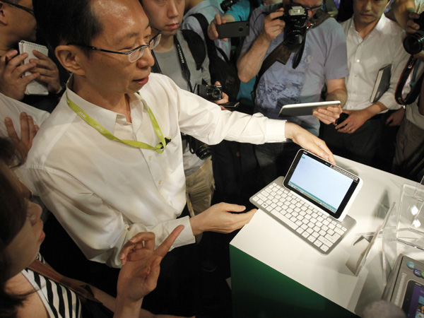 An Acer employee displays a new tablet, Iconia W3, at an international press conference on the eve of the opening of Computex , one of the world’s largest IT exhibitions, in Taipei, Taiwan, Monday, June 3, 2013. The 8-inch Windows-8 based Iconia W3 combines both home and office functions. AP/WALLY SANTANA