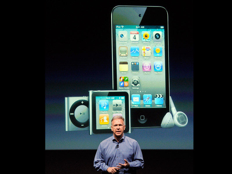 Apple's Senior Vice President of Worldwide product marketing Phil Schiller speaks about the iPod touch and iPod Nano during the introduction of the new iPhone 4s at the company’s headquarters in Cupertino, California Oct. 4, 2011. South Korea’s Samsung Electronics is seeking a ban in France and Italy on the sale of Apple’s latest iPhone in the latest round of its legal battle with the US technology giant.AFP