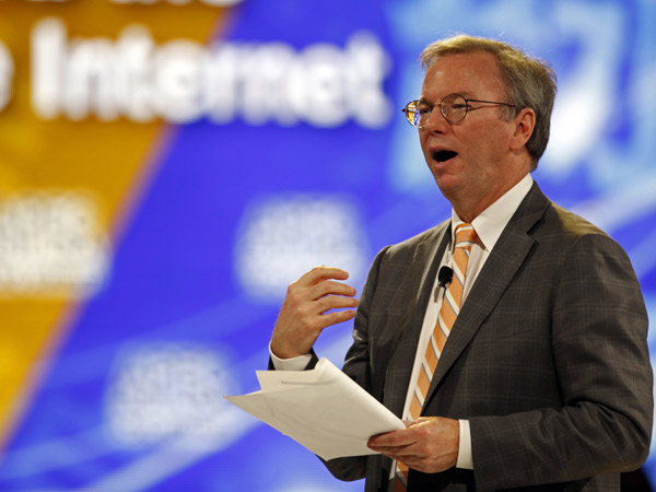 Eric Schmidt, executive chairman of Google, speaks to delegates of the Asia-Pacific Economic Cooperation (APEC) summit Saturday, November 12, 2011, in Honolulu. ANDRES LEIGHTON/AP PHOTO